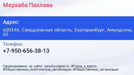 Мерхаба Пахлава по адресу 620146, Свердловская область, Екатеринбург, Амундсена, 65 в дальнейшем Организация, размещена в следующих категориях: