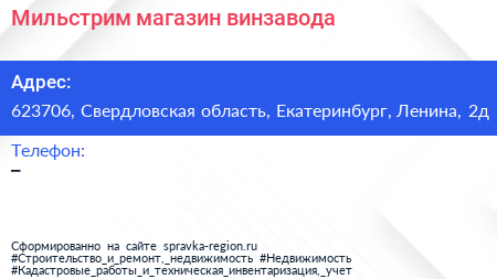 Мильстрим, магазин винзавода по адресу 623706, Свердловская область, Екатеринбург, Ленина, 2д в дальнейшем Организация, размещена в следующих категориях: