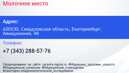 Молочное место по адресу 620130, Свердловская область, Екатеринбург, Авиационная, 48 в дальнейшем Организация, размещена в следующих категориях: