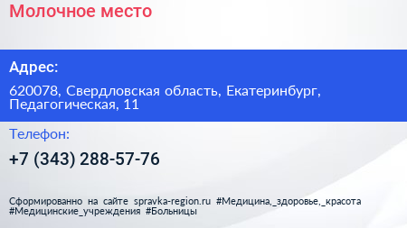 Молочное место по адресу 620078, Свердловская область, Екатеринбург, Педагогическая, 11 в дальнейшем Организация, размещена в следующих категориях: