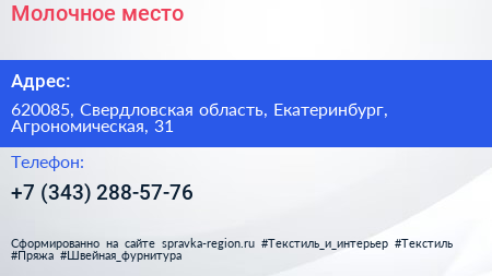 Молочное место по адресу 620085, Свердловская область, Екатеринбург, Агрономическая, 31 в дальнейшем Организация, размещена в следующих категориях: