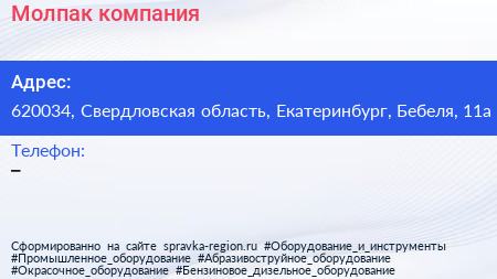 Молпак, компания по адресу 620034, Свердловская область, Екатеринбург, Бебеля, 11а в дальнейшем Организация, размещена в следующих категориях: