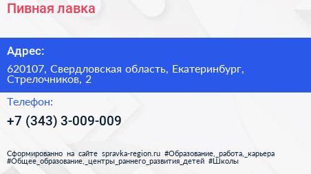 Пивная лавка по адресу 620107, Свердловская область, Екатеринбург, Стрелочников, 2 в дальнейшем Организация, размещена в следующих категориях: