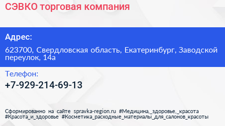 СЭВКО, торговая компания по адресу 623700, Свердловская область, Екатеринбург, Заводской переулок, 14а в дальнейшем Организация, размещена в следующих категориях:
