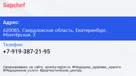 #Sapchef по адресу 620085, Свердловская область, Екатеринбург, Монтёрская, 3 в дальнейшем Организация, размещена в следующих категориях:
