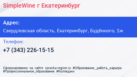 SimpleWine, г. Екатеринбург по адресу Свердловская область, Екатеринбург, Будённого, 1ж в дальнейшем Организация, размещена в следующих категориях: