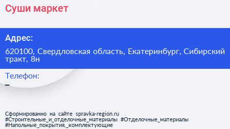 Суши-маркет по адресу 620100, Свердловская область, Екатеринбург, Сибирский тракт, 8н в дальнейшем Организация, размещена в следующих категориях: