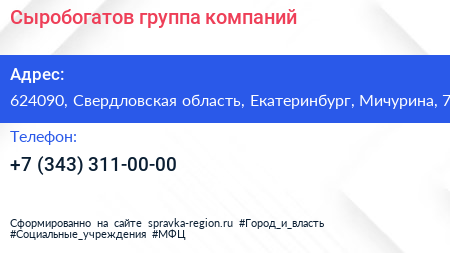 Сыробогатов, группа компаний по адресу 624090, Свердловская область, Екатеринбург, Мичурина, 7 в дальнейшем Организация, размещена в следующих категориях: