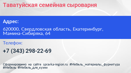 Таватуйская семейная сыроварня по адресу 620000, Свердловская область, Екатеринбург, Мамина-Сибиряка, 64 в дальнейшем Организация, размещена в следующих категориях: