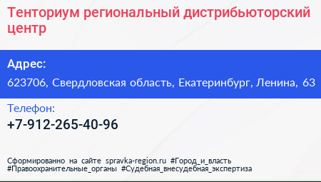 Тенториум, региональный дистрибьюторский центр по адресу 623706, Свердловская область, Екатеринбург, Ленина, 63 в дальнейшем Организация, размещена в следующих категориях: