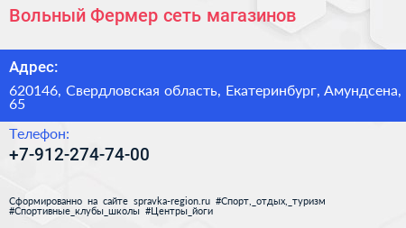Вольный Фермер, сеть магазинов по адресу 620146, Свердловская область, Екатеринбург, Амундсена, 65 в дальнейшем Организация, размещена в следующих категориях: