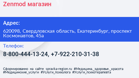 Zenmod, магазин по адресу 620098, Свердловская область, Екатеринбург, проспект Космонавтов, 45а в дальнейшем Организация, размещена в следующих категориях: