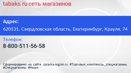 tabaks.ru, сеть магазинов по адресу 620131, Свердловская область, Екатеринбург, Крауля, 74 в дальнейшем Организация, размещена в следующих категориях: