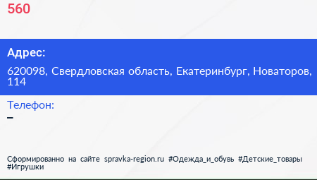 №560 по адресу 620098, Свердловская область, Екатеринбург, Новаторов, 114 в дальнейшем Организация, размещена в следующих категориях: