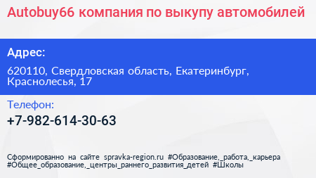 Autobuy66, компания по выкупу автомобилей по адресу 620110, Свердловская область, Екатеринбург, Краснолесья, 17 в дальнейшем Организация, размещена в следующих категориях: