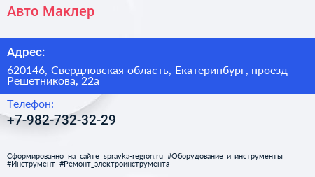 Авто Маклер по адресу 620146, Свердловская область, Екатеринбург, проезд Решетникова, 22а в дальнейшем Организация, размещена в следующих категориях: