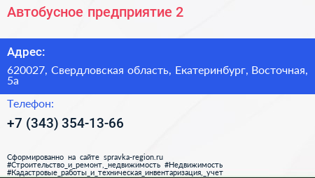Автобусное предприятие №2 по адресу 620027, Свердловская область, Екатеринбург, Восточная, 5а в дальнейшем Организация, размещена в следующих категориях: