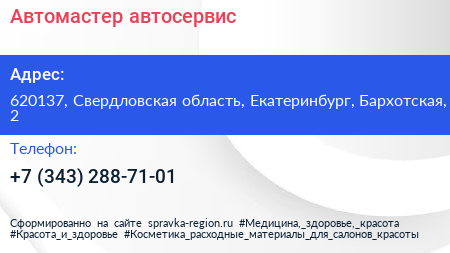 Автомастер, автосервис по адресу 620137, Свердловская область, Екатеринбург, Бархотская, 2 в дальнейшем Организация, размещена в следующих категориях: