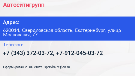 Автоситигрупп по адресу 620014, Свердловская область, Екатеринбург, улица Московская, 77 в дальнейшем Организация, размещена в следующих категориях: