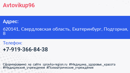 Avtovikup96 по адресу 620141, Свердловская область, Екатеринбург, Подгорная, 8 в дальнейшем Организация, размещена в следующих категориях: