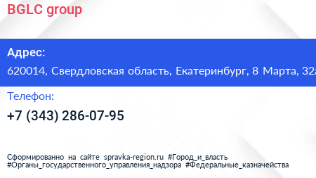 BGLC group по адресу 620014, Свердловская область, Екатеринбург, 8 Марта, 32а в дальнейшем Организация, размещена в следующих категориях: