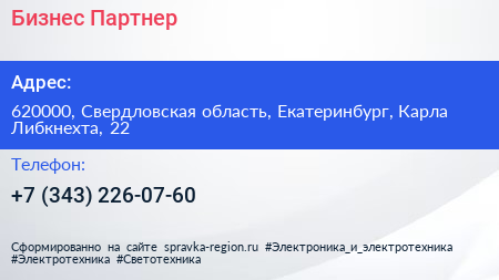 Бизнес Партнер по адресу 620000, Свердловская область, Екатеринбург, Карла Либкнехта, 22 в дальнейшем Организация, размещена в следующих категориях: