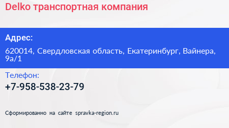 Delko, транспортная компания по адресу 620014, Свердловская область, Екатеринбург, Вайнера, 9а/1 в дальнейшем Организация, размещена в следующих категориях: