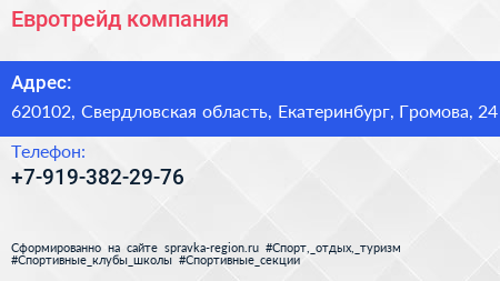 Евротрейд, компания по адресу 620102, Свердловская область, Екатеринбург, Громова, 24 в дальнейшем Организация, размещена в следующих категориях: