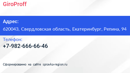 GiroProff по адресу 620043, Свердловская область, Екатеринбург, Репина, 94 в дальнейшем Организация, размещена в следующих категориях: