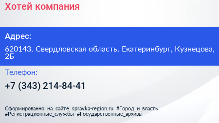 Хотей, компания по адресу 620143, Свердловская область, Екатеринбург, Кузнецова, 2Б в дальнейшем Организация, размещена в следующих категориях: