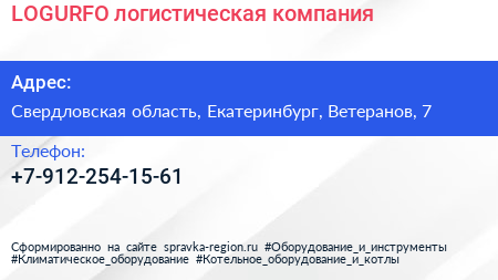 LOGURFO, логистическая компания по адресу Свердловская область, Екатеринбург, Ветеранов, 7 в дальнейшем Организация, размещена в следующих категориях: