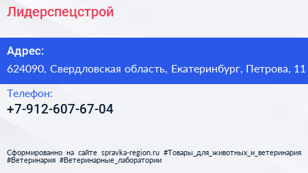 Лидерспецстрой по адресу 624090, Свердловская область, Екатеринбург, Петрова, 11 в дальнейшем Организация, размещена в следующих категориях: