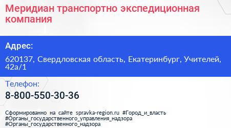 Меридиан, транспортно-экспедиционная компания по адресу 620137, Свердловская область, Екатеринбург, Учителей, 42а/1 в дальнейшем Организация, размещена в следующих категориях: