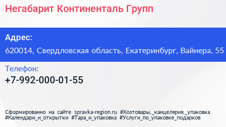 Негабарит Континенталь Групп по адресу 620014, Свердловская область, Екатеринбург, Вайнера, 55 в дальнейшем Организация, размещена в следующих категориях: