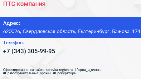 ПТС, компания по адресу 620026, Свердловская область, Екатеринбург, Бажова, 174 в дальнейшем Организация, размещена в следующих категориях: