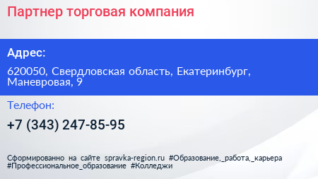 Партнер, торговая компания по адресу 620050, Свердловская область, Екатеринбург, Маневровая, 9 в дальнейшем Организация, размещена в следующих категориях:
