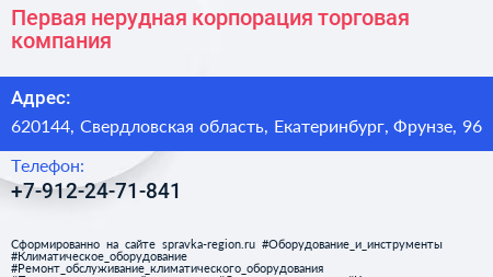 Первая нерудная корпорация, торговая компания по адресу 620144, Свердловская область, Екатеринбург, Фрунзе, 96 в дальнейшем Организация, размещена в следующих категориях: