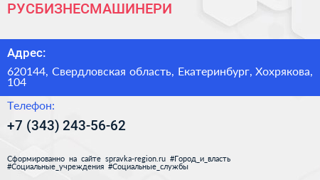 РУСБИЗНЕСМАШИНЕРИ по адресу 620144, Свердловская область, Екатеринбург, Хохрякова, 104 в дальнейшем Организация, размещена в следующих категориях:
