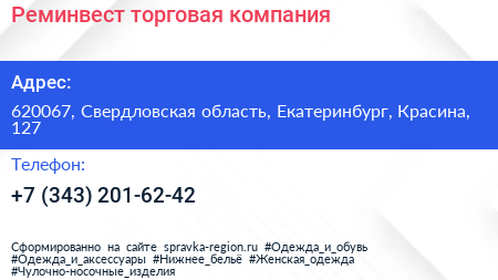 Реминвест, торговая компания по адресу 620067, Свердловская область, Екатеринбург, Красина, 127 в дальнейшем Организация, размещена в следующих категориях:
