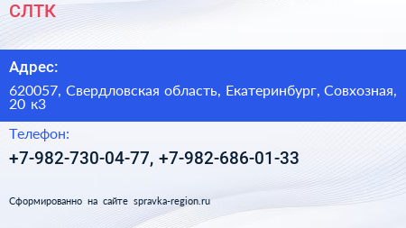 СЛТК по адресу 620057, Свердловская область, Екатеринбург, Совхозная, 20 к3 в дальнейшем Организация, размещена в следующих категориях: