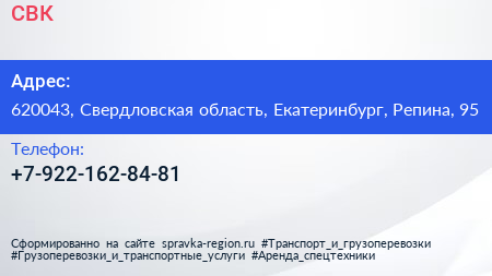 СВК по адресу 620043, Свердловская область, Екатеринбург, Репина, 95 в дальнейшем Организация, размещена в следующих категориях: