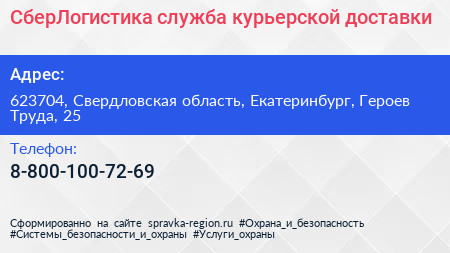 СберЛогистика, служба курьерской доставки по адресу 623704, Свердловская область, Екатеринбург, Героев Труда, 25 в дальнейшем Организация, размещена в следующих категориях: