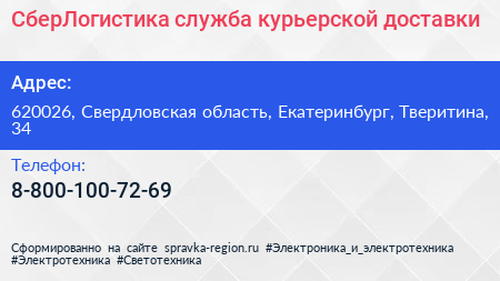 СберЛогистика, служба курьерской доставки по адресу 620026, Свердловская область, Екатеринбург, Тверитина, 34 в дальнейшем Организация, размещена в следующих категориях: