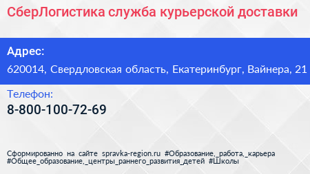 СберЛогистика, служба курьерской доставки по адресу 620014, Свердловская область, Екатеринбург, Вайнера, 21 в дальнейшем Организация, размещена в следующих категориях: