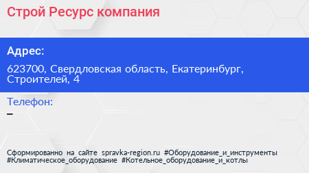 Строй Ресурс, компания по адресу 623700, Свердловская область, Екатеринбург, Строителей, 4 в дальнейшем Организация, размещена в следующих категориях: