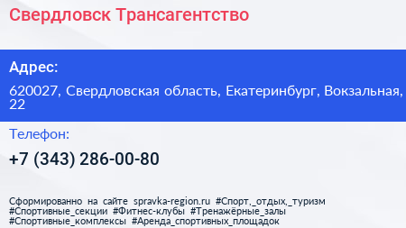 Свердловск Трансагентство по адресу 620027, Свердловская область, Екатеринбург, Вокзальная, 22 в дальнейшем Организация, размещена в следующих категориях: