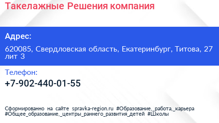 Такелажные Решения, компания по адресу 620085, Свердловская область, Екатеринбург, Титова, 27 лит 3 в дальнейшем Организация, размещена в следующих категориях: