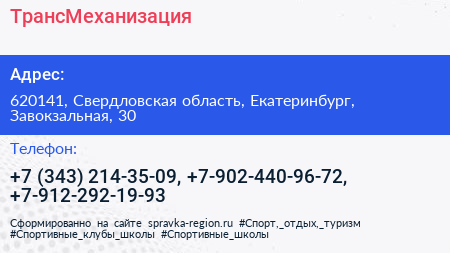 ТрансМеханизация по адресу 620141, Свердловская область, Екатеринбург, Завокзальная, 30 в дальнейшем Организация, размещена в следующих категориях:
