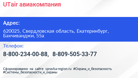 UTair, авиакомпания по адресу 620025, Свердловская область, Екатеринбург, Бахчиванджи, 55а в дальнейшем Организация, размещена в следующих категориях: