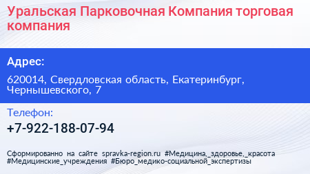 Уральская Парковочная Компания, торговая компания по адресу 620014, Свердловская область, Екатеринбург, Чернышевского, 7 в дальнейшем Организация, размещена в следующих категориях: